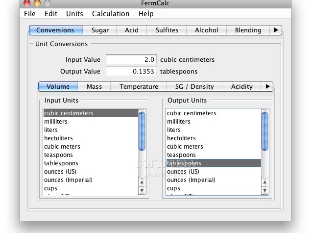מחשבוני המרה של מסה,נפח,ריכוז ויחידות נפוצות
